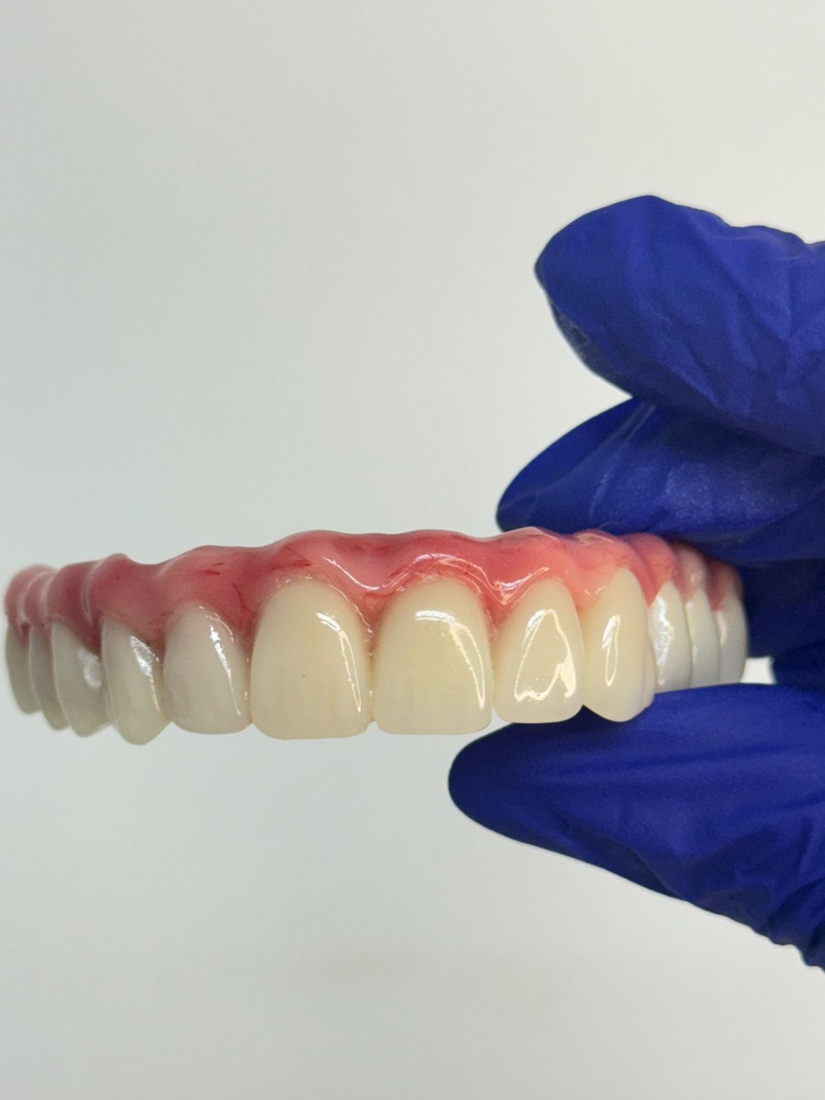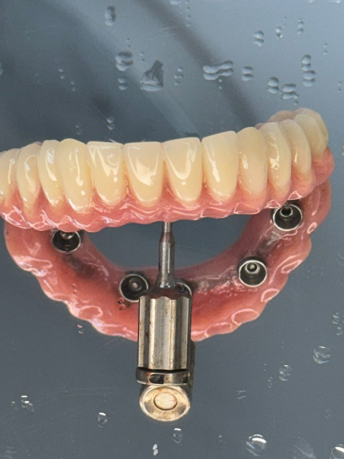 A prótese é fixada sobre 4 a 6 implantes, proporcionando estabilidade, estética e conforto. Você pode comer, falar e sorrir sem medo — e sem precisar remover a prótese para limpar.
